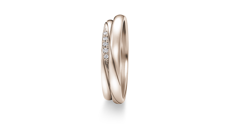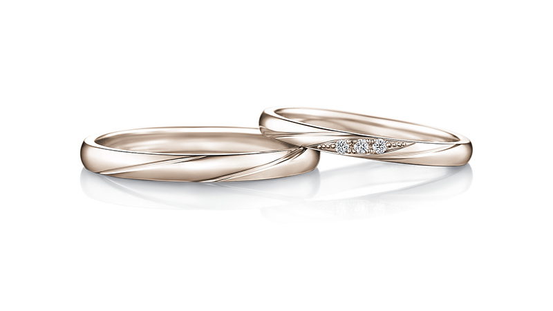 以互相追逐的两道线条轨迹,展现清新脱俗的爱情。象征两人坚定不移的感情,合而为一、相互依偎。戒指犹如贤者射出的箭,鲜明地描绘出二人迈向未来的幸福轨迹。