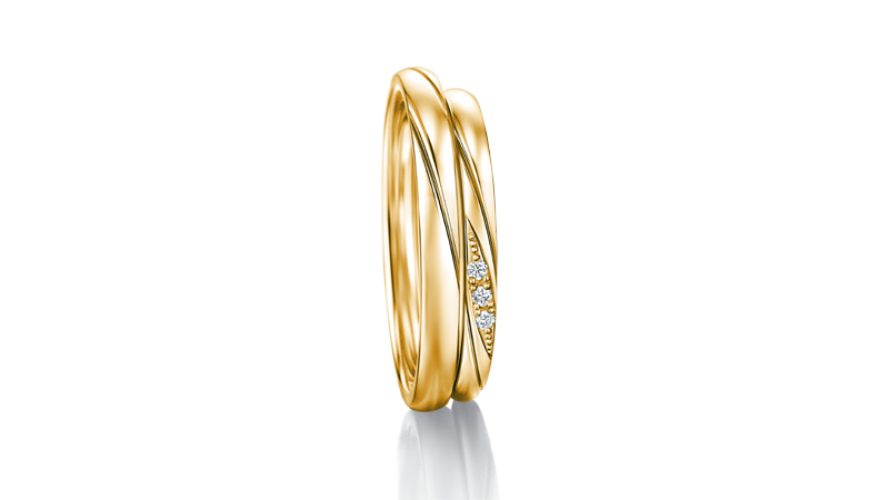 以互相追逐的两道线条轨迹,展现清新脱俗的爱情。象征两人坚定不移的感情,合而为一、相互依偎。戒指犹如贤者射出的箭,鲜明地描绘出二人迈向未来的幸福轨迹。