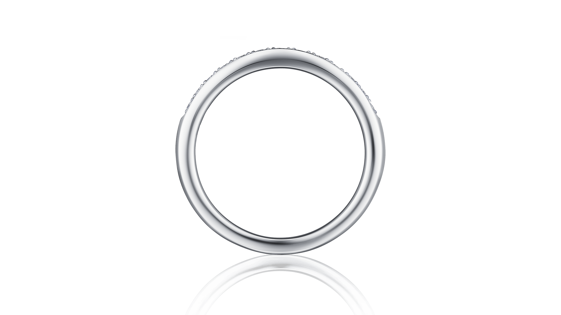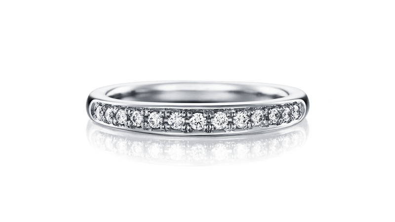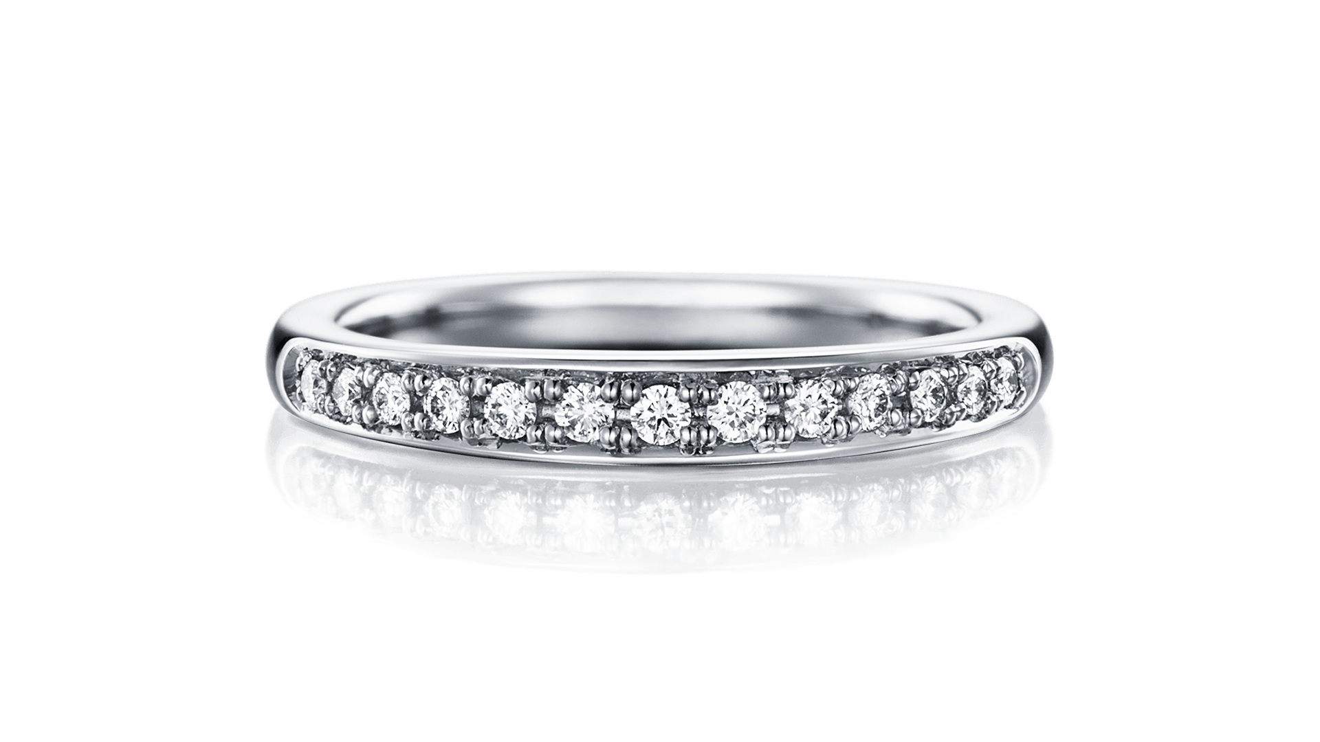 沿著柔和线条镶满配钻的华丽戒指。以配钻突显幸福感的设计,蕴含著「两人迎向幸福未来」的心愿。