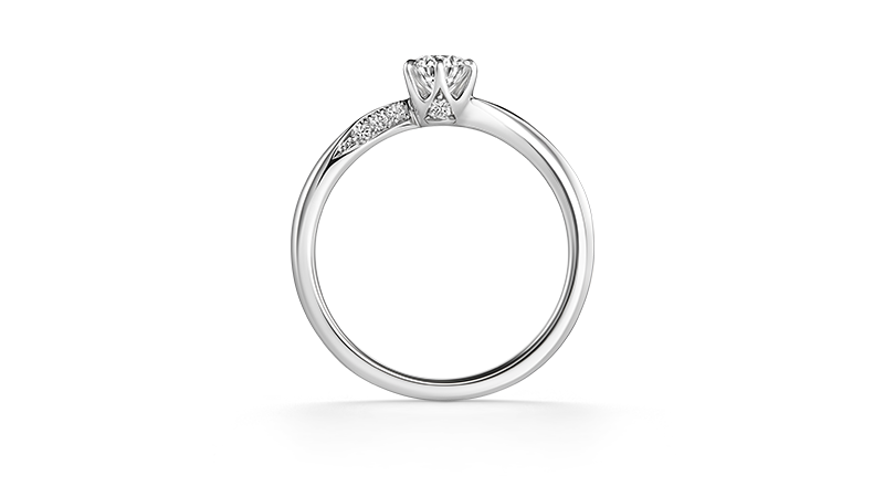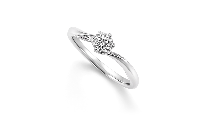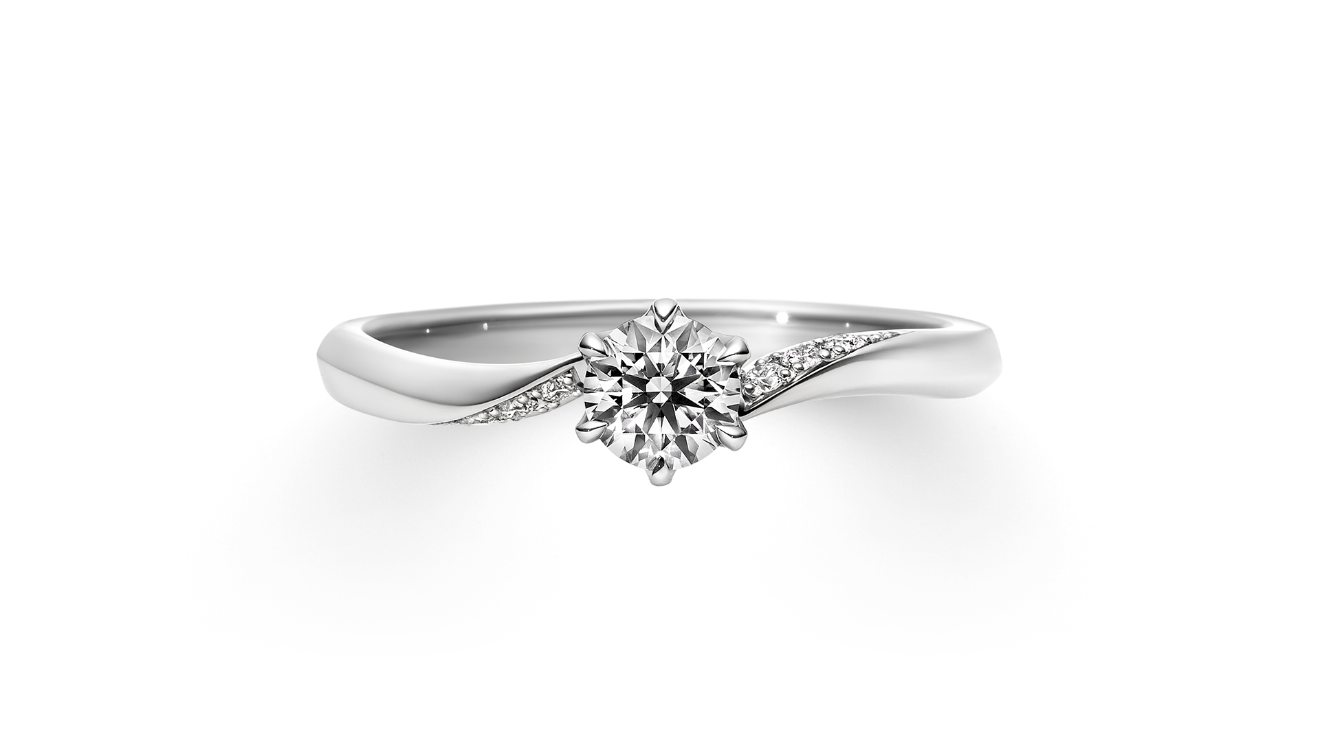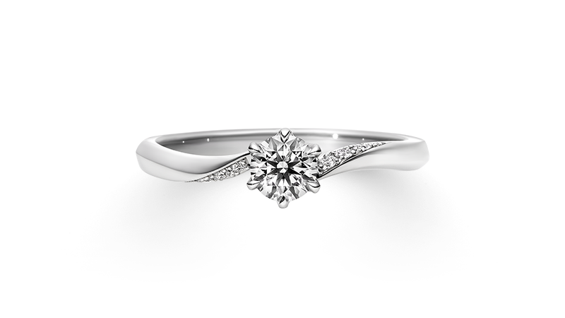 有如光线照射在心灵,如命运般的相遇。代表祝福之花的订婚钻戒与结婚对戒重迭配戴,描绘出相遇的瞬间。两只戒指合并时,以配钻形成连绵而优美波浪线条,为此套戒的特点。使爱的约誓一直伴随左右。