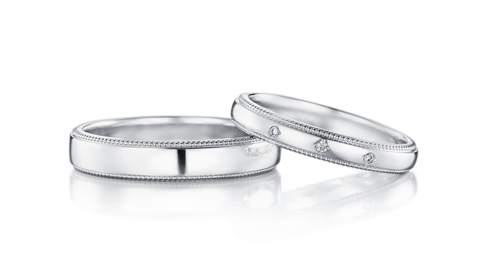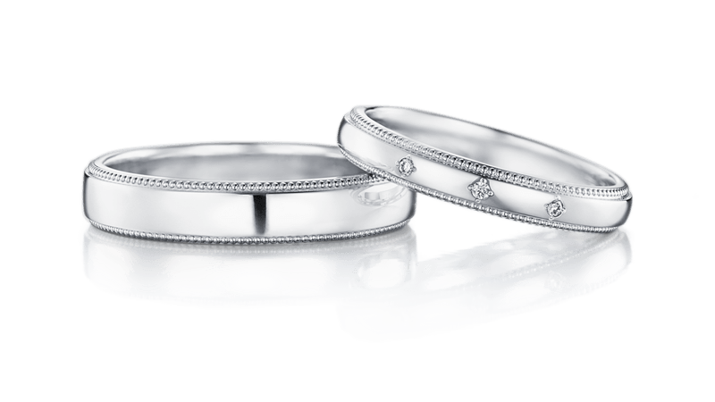 环绕戒指一圈的密钉镶滚珠边代表「永远」,是适合用以承诺誓言的古典戒款。