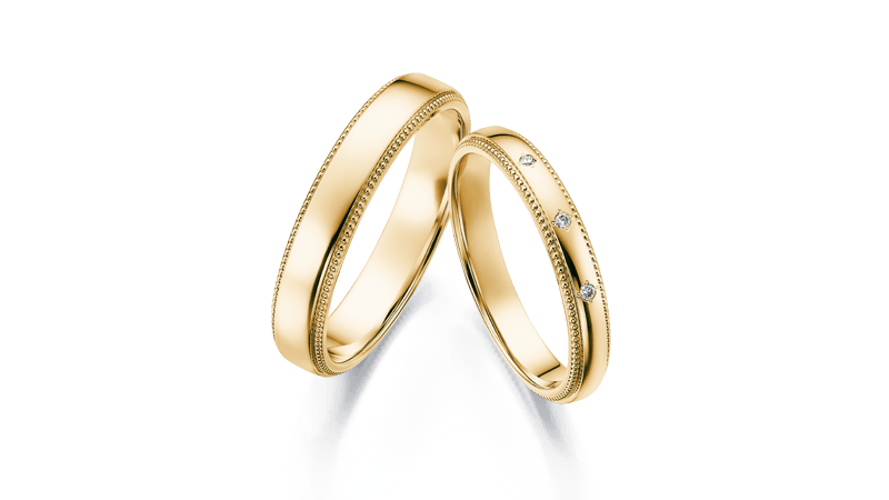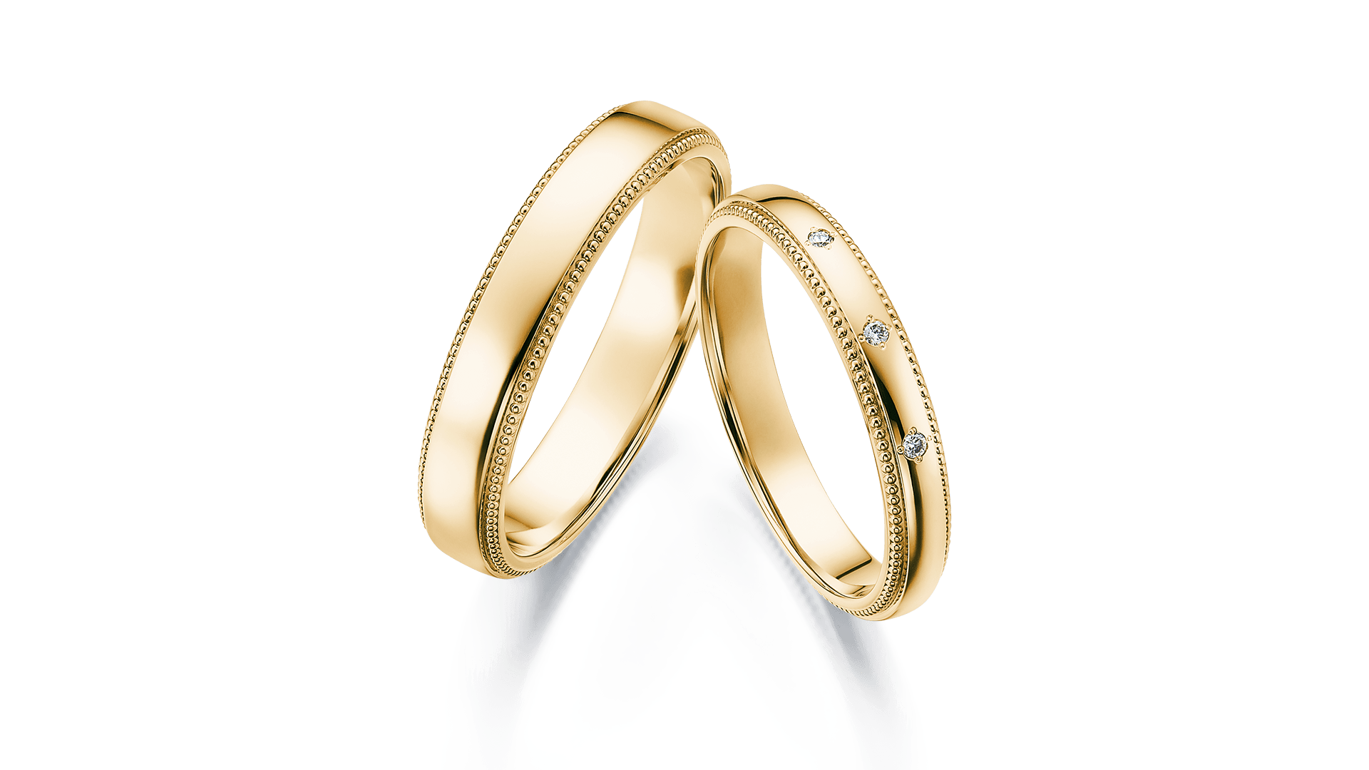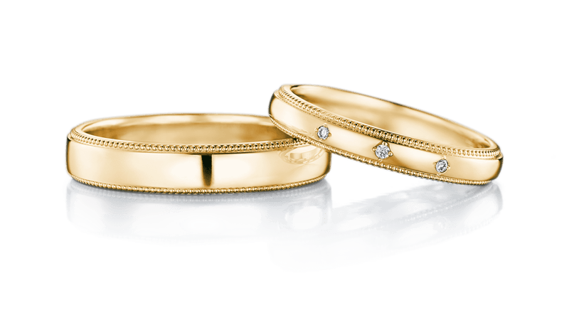 环绕戒指一圈的密钉镶滚珠边代表「永远」,是适合用以承诺誓言的古典戒款。