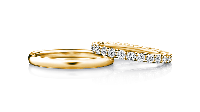 Full Eternity Ring「Mani」的整圈钻石设计,恰如其分地表现出永恒情缘。取名于婚姻女神之名的男戒设计简约光滑,恰如其分的衬托出女戒的绚丽奢华,绝妙搭配倾倒众人。