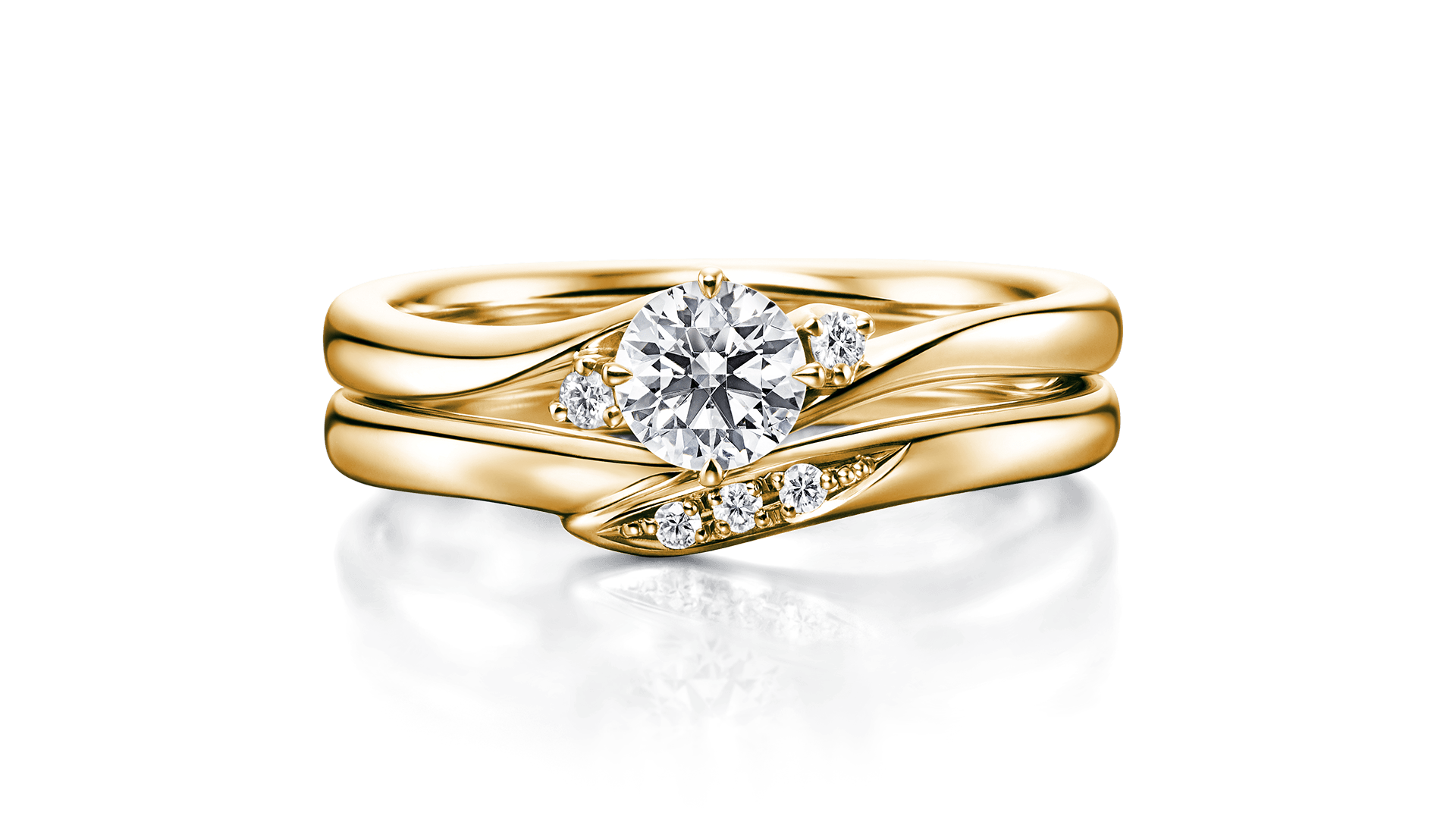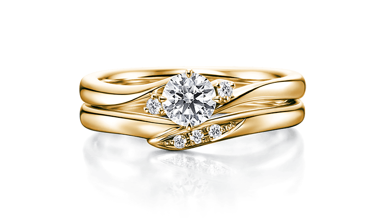 搭配和缓V字型的对戒「clementia」组合成秀气高雅的结婚套戒。