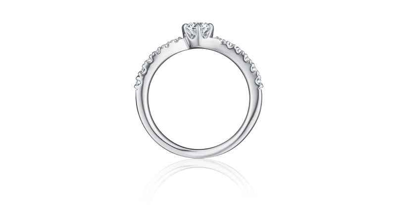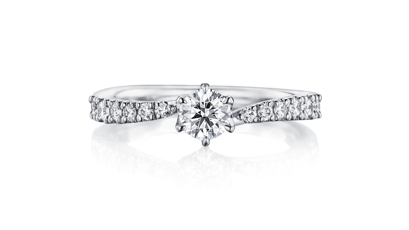 两侧由外向内接连镶嵌的配钻,将主钻衬托得更加耀眼。