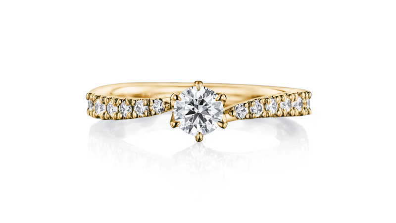 延伸至中心的流动线条,搭配两侧大小渐层的配钻,是款华丽的婚戒。『LYRA』指的是天琴座,以响彻夜空的优美琴声为意象,因而赋予这个名称。