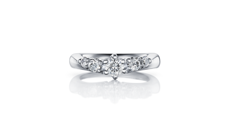 配钻配置于中央的两侧,呈现华丽V字型戒环的款式。