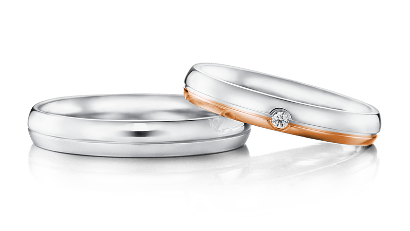 以太阳之子命名的结婚对戒,巧妙运用双色搭配,演绎出摩登风格。精心打磨的内侧滑面设计,赋予贴肤舒适的佩戴感受。