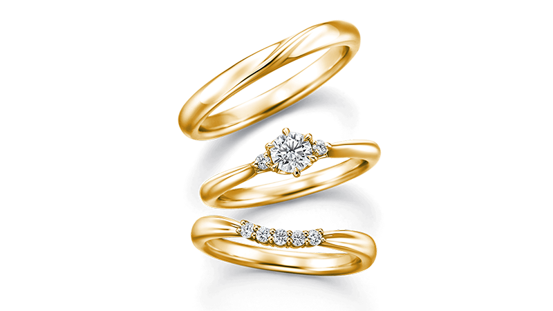 订婚钻戒以夜空中格外耀目的「北极星」命名。象征「天秤座」的结婚戒指,则以五颗配钻排成别致的V字线条,围绕著屹立不摇的闪亮一等星。带领付出相等情意的两人,迈向永恒的幸福之路。