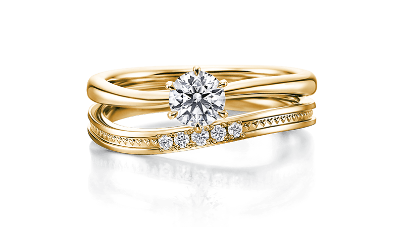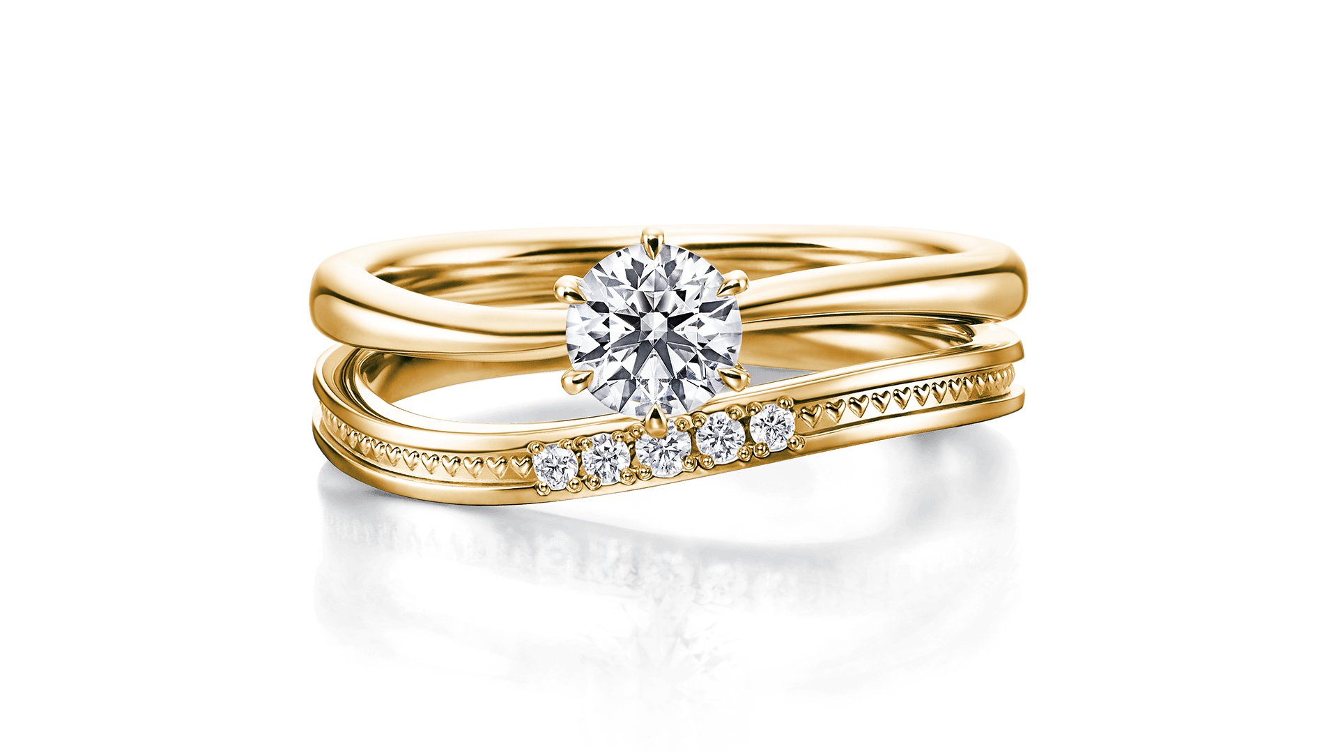 以心型设计搭配成套的婚戒,蕴含两人浪漫的约定。