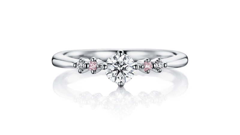 左右配钻使用粉红钻与白钻,两色的交替闪烁就如天上繁星的闪耀。除可呈现出女性可爱的一面,同时也可感受到典雅的气质。