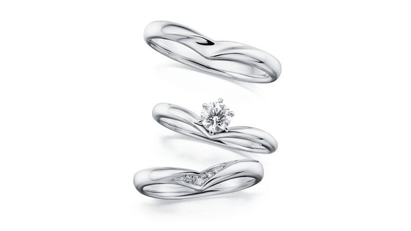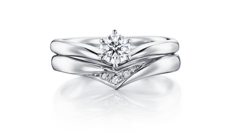 兼具铂金的美感与钻石的光芒,高雅V型线条的套戒。
