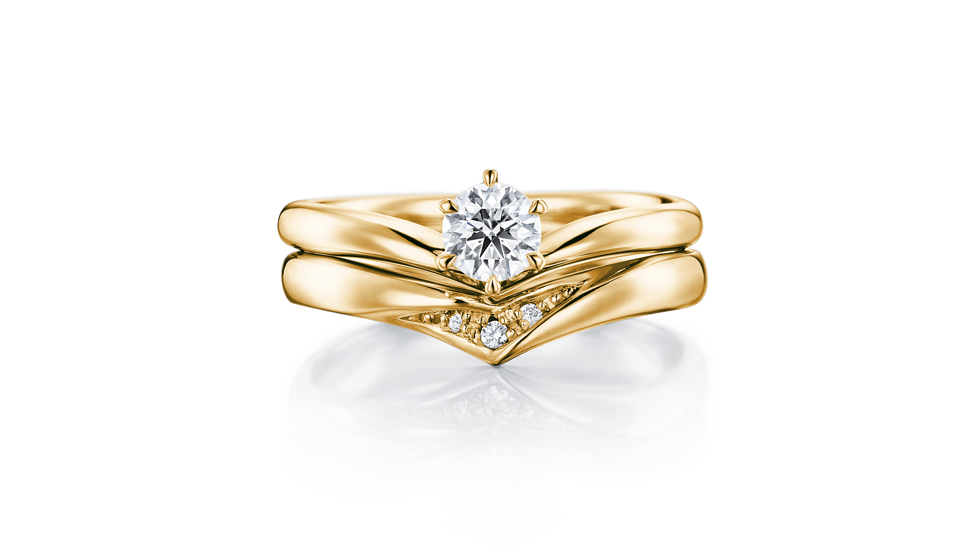 兼具铂金的美感与钻石的光芒,高雅V型线条的套戒。