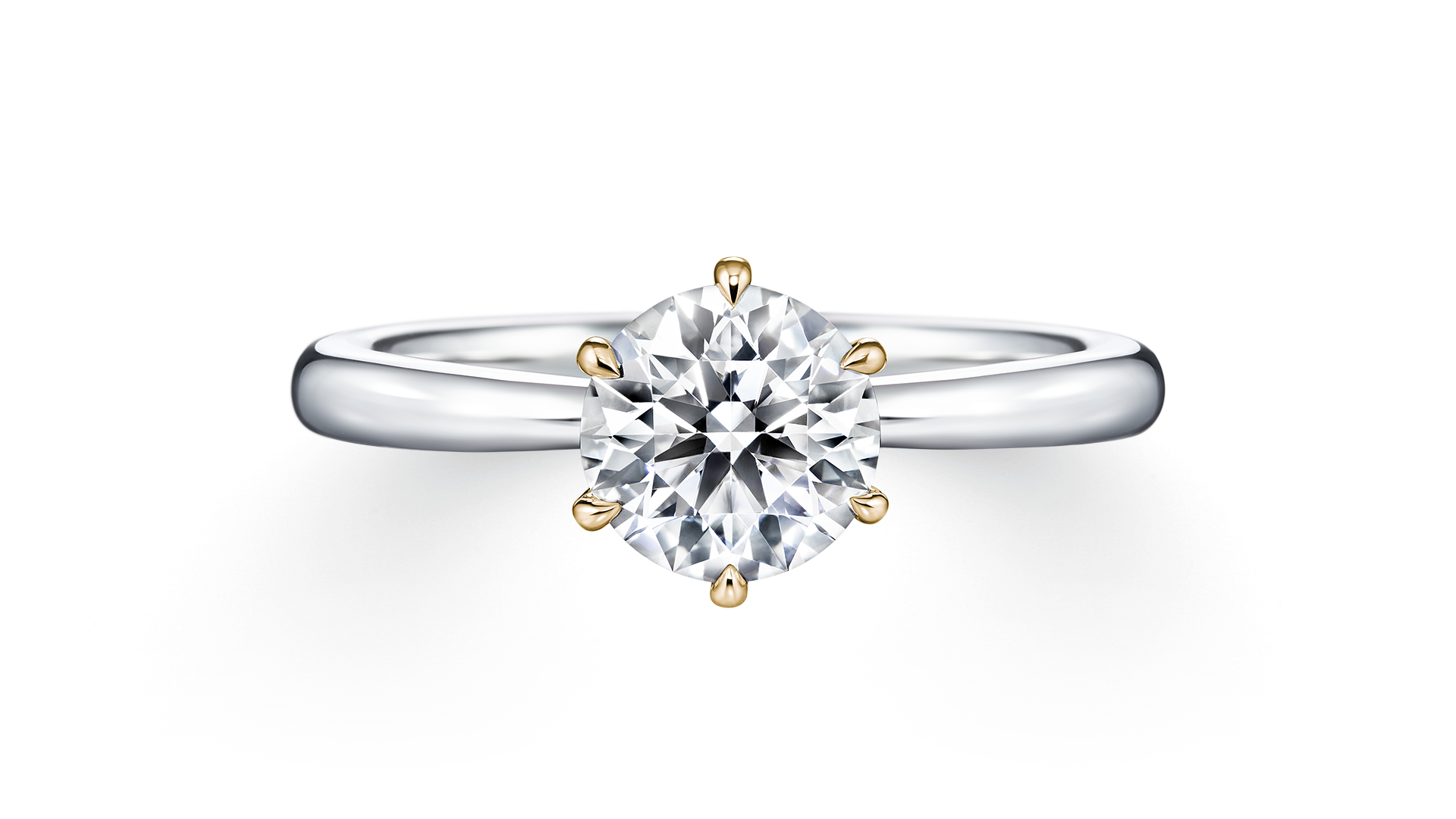 双色组合的单钻戒指上闪耀的一等星, 散发着不容忽视的华丽气质。 令人难忘的侧边设计,象征着两人的连接。
