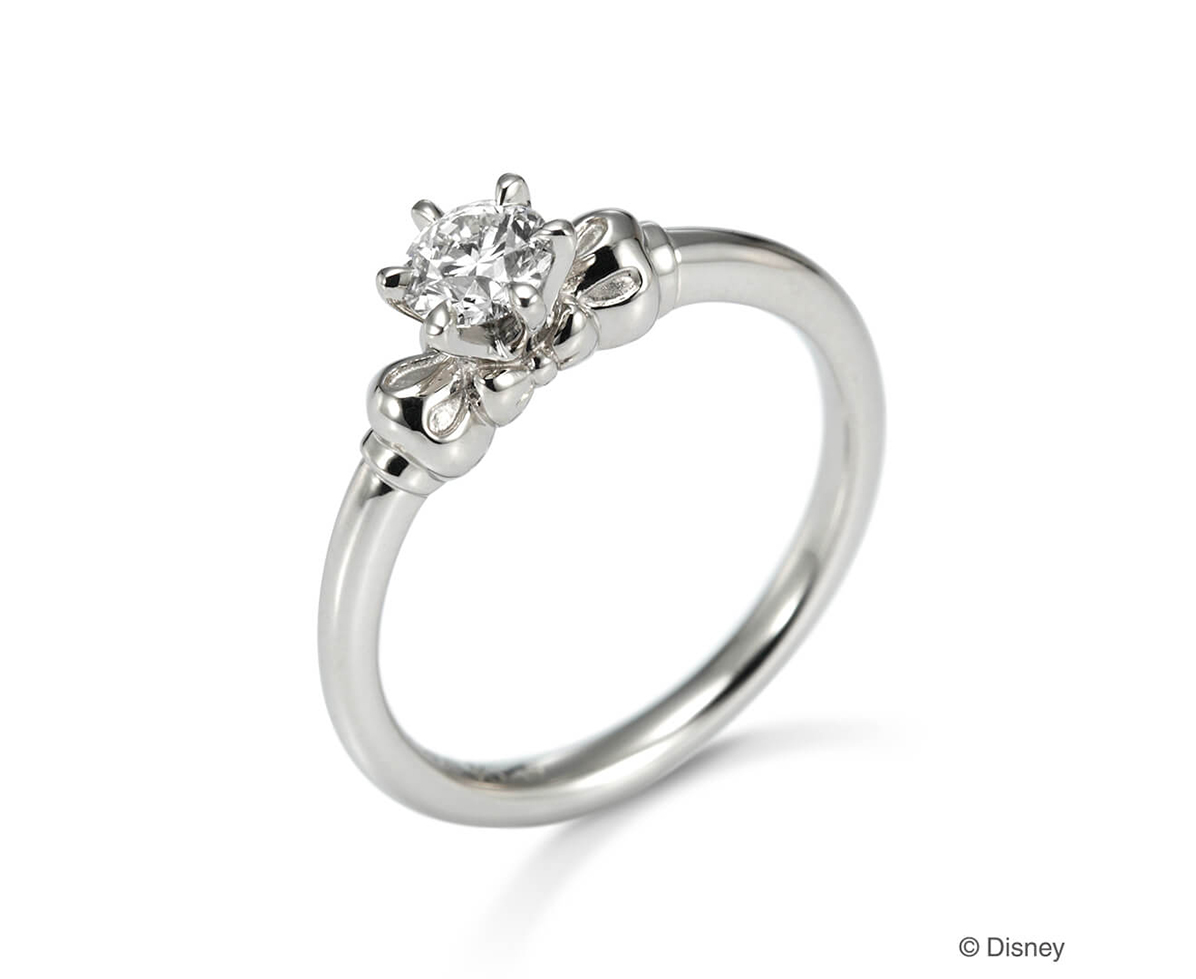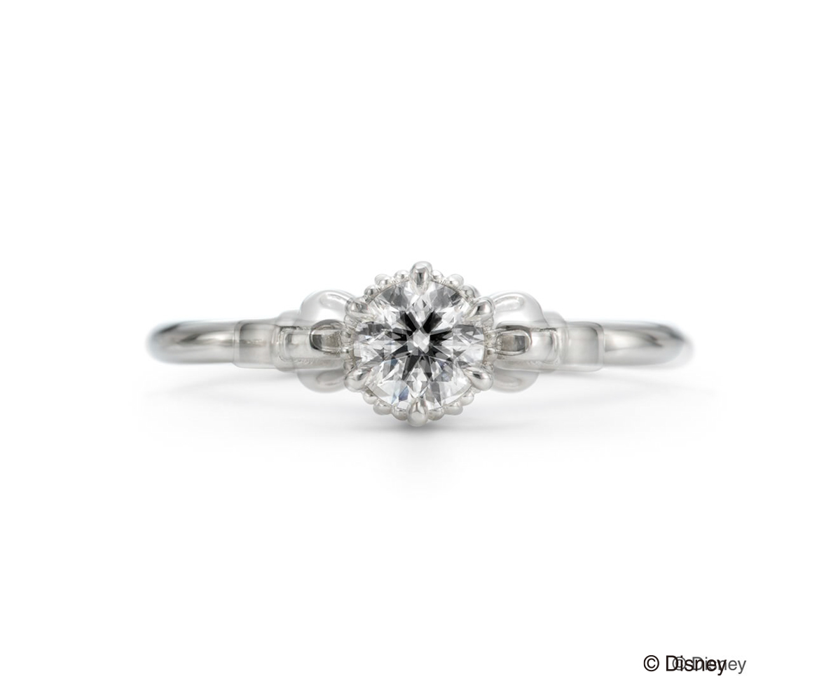 “白雪公主”礼服袖子与蝴蝶结造型的可爱戒指。“白雪公主”善解人意,温柔对待每一个人。愿体贴的心能让两人间的羁绊紧紧相系。礼服袖子做工精细,呈现柔软蓬松的印象。袖子设计与纤细戒环经过比例衡量,从任何角度来看皆是协调搭配。