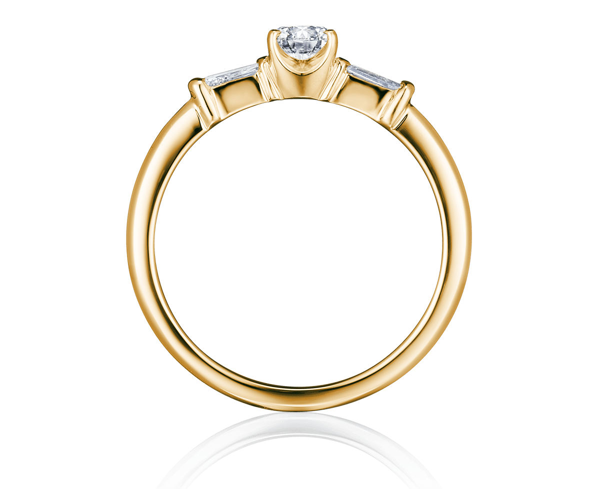 据说蝴蝶结不仅代表了两人的情意,更紧系了人与人之间的连结。本款戒指以直线的梯形车工象征该主题,让整体设计显得更加简洁。「SHAULA」是拥有3种光辉的3连星名称。