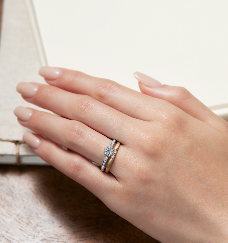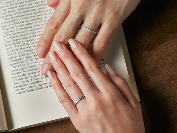 此对戒系列以多种匠艺,展现「对今后寄予祝福,愿未来得到幸福」的美好愿景。两人携手踏上崭新道路的岁月与回忆,点点滴滴都细细镌刻于戒指上。